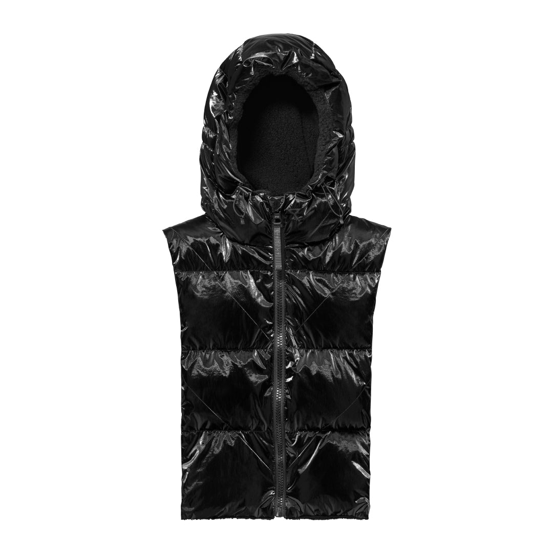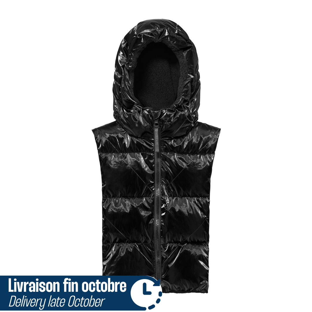 Capuche doudoune noir vinyle réversible sherpa