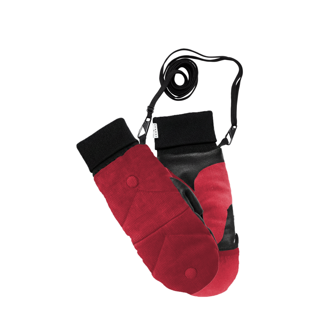 Moufles convertibles mitaines velours milleraies corail